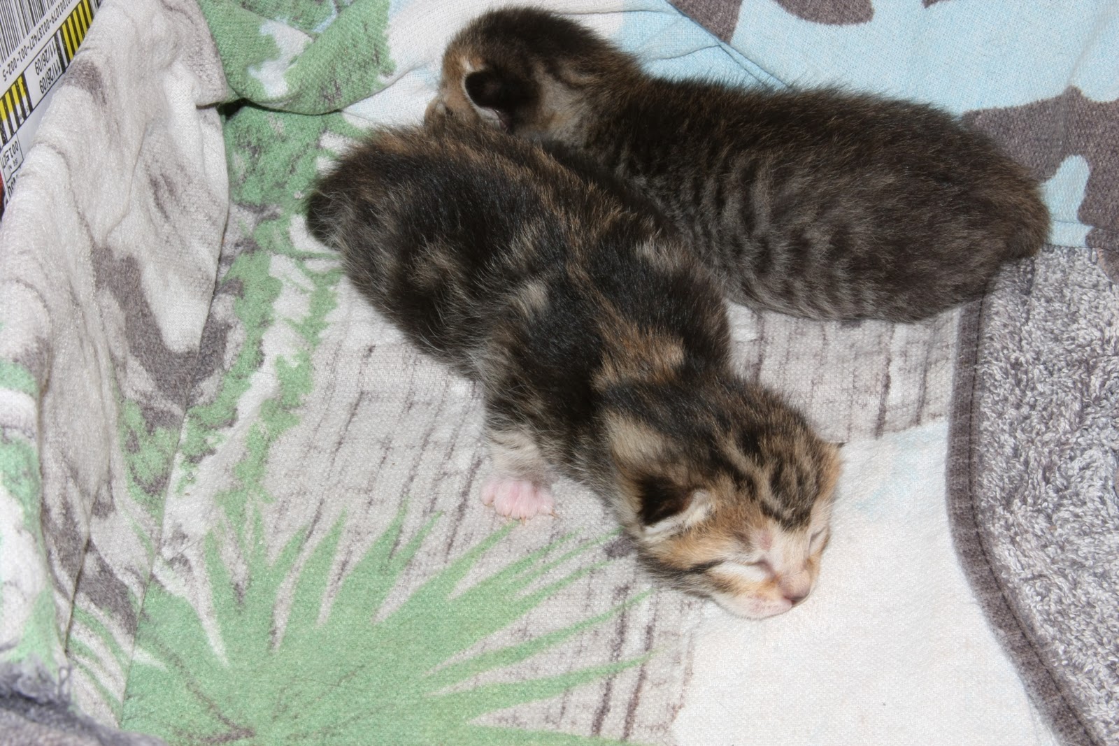 And we have kittens! Brian saved a little kitten from the streets back in March or April and silly me, I thought she was too young to have babies, "planning" on getting her spayed. That is now on the agenda for January and in the meantime we have these two little cuties to add to our menagerie.